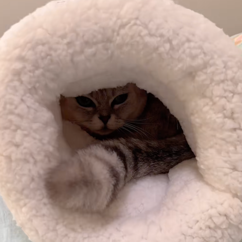 Die meisten Tierbetten sind nur weich zum Liegen. Die Flauschwolke bietet mehr: Sie umhüllt die Katze wie eine kleine Höhle und hält ihre Körperwärme fest. So bleibt es drinnen viel wärmer als bei einem normalen Bett mit nur einer Oberfläche.